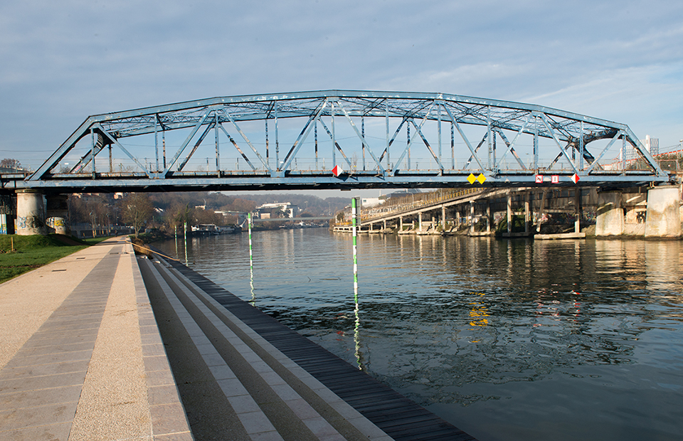 Itinéraire du pont Seibert vers la nouvelle passerelle reliant la rive gauche à l'île Seguin :