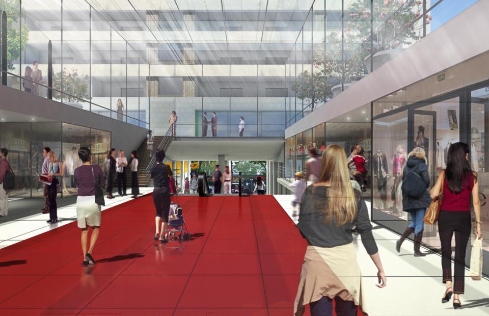 - Le passage du Vieux Pont de Sèvres élargi, éclairé par une verrière et bordé de commerces sur deux niveaux;