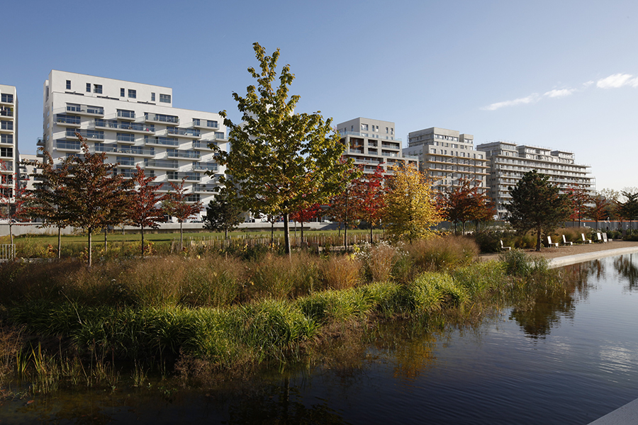 La conception des espaces publics est géré par l'agence Laverne Paysage et Urbanisme, maître d'oeuvre des espaces publics sur l'ensemble de la ZAC.